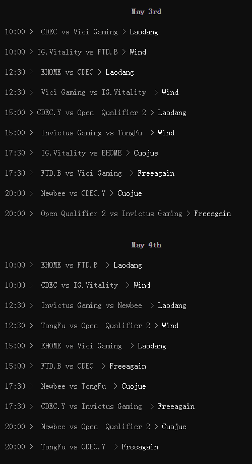 VG和Newbee.Y最终通过了激烈的公开赛选拔,进入到地区预选赛中,中国区预选赛在5月3日-6日的上午10时开启战斗,有兴趣的玩家可以进入DOTA2客户端或各大直播平台进行观战。