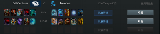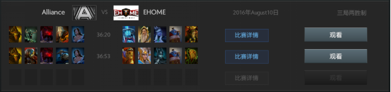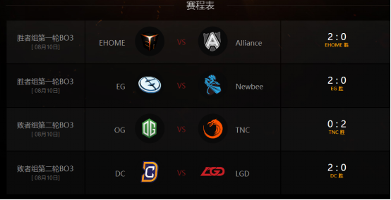 北京时间8月10日,第六届DOTA2国际邀请赛主赛事来到第二个比赛日,三支中国战队依次登场,为大家呈现出精彩的中外对抗。四个BO3战罢,赛果可谓喜忧参半,有势如破竹的无敌晋级(EHOME对阵Alliance),有心有不甘的遗憾跌落(NewBee对阵EG),也有无可奈何的伤感离开(LGD对阵DC)。今天可以说是最为血腥的一天,4轮比赛全部是2:0的对局,最新的对战分组情况请登陆赛事专题《《《按日期检索