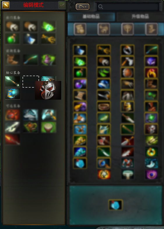 商店的左侧还有推荐装备,每个英雄的大多数装备都能直接在上面找到,同时还能点击进入编辑模式,将推荐装备改造成自己的习惯出装,这一项将同步在DOTA2云中,无论您使用哪台电脑都能轻松使用。