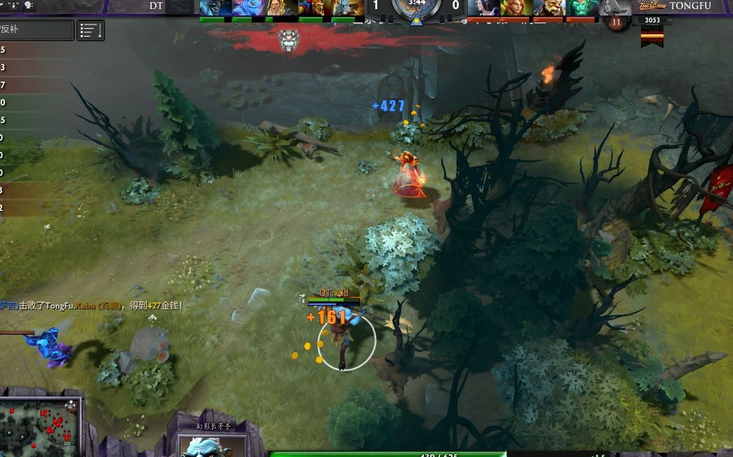 走位小心的天辉方没有给夜魇combo的机会,天辉前期小有优势。