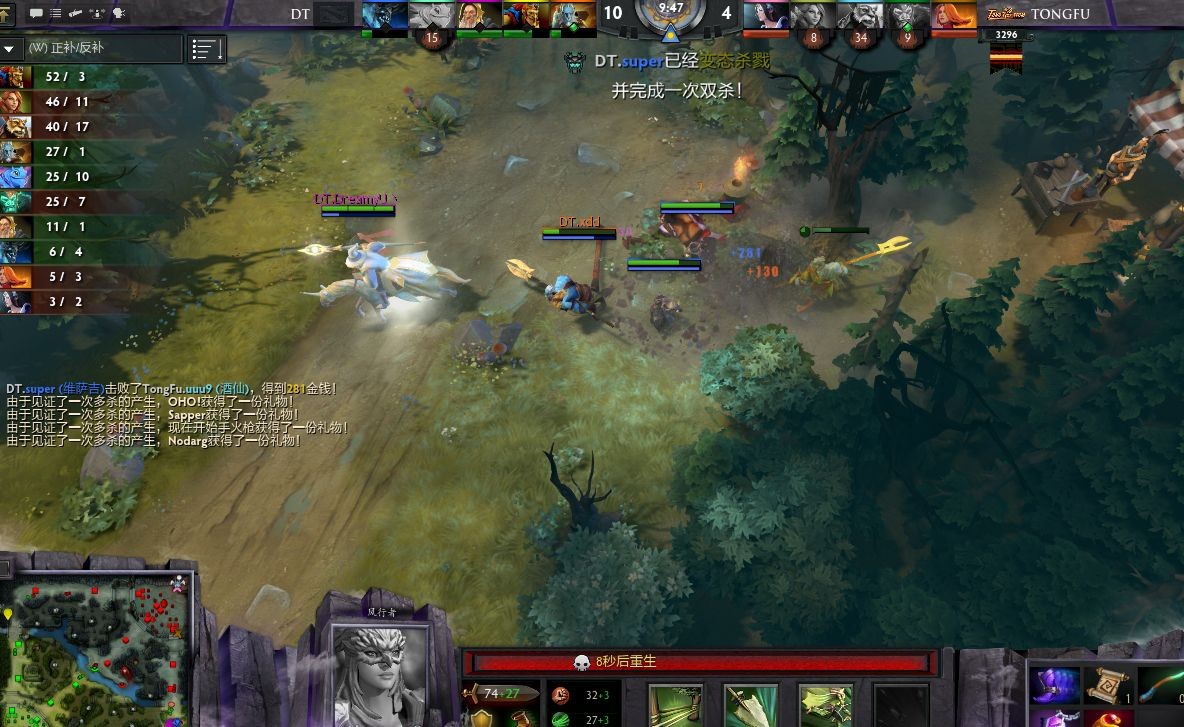 DT先是打成1换3 PUCK死掉 带走脆皮 LINA POM 和核心骷髅王,维萨吉功不可没。