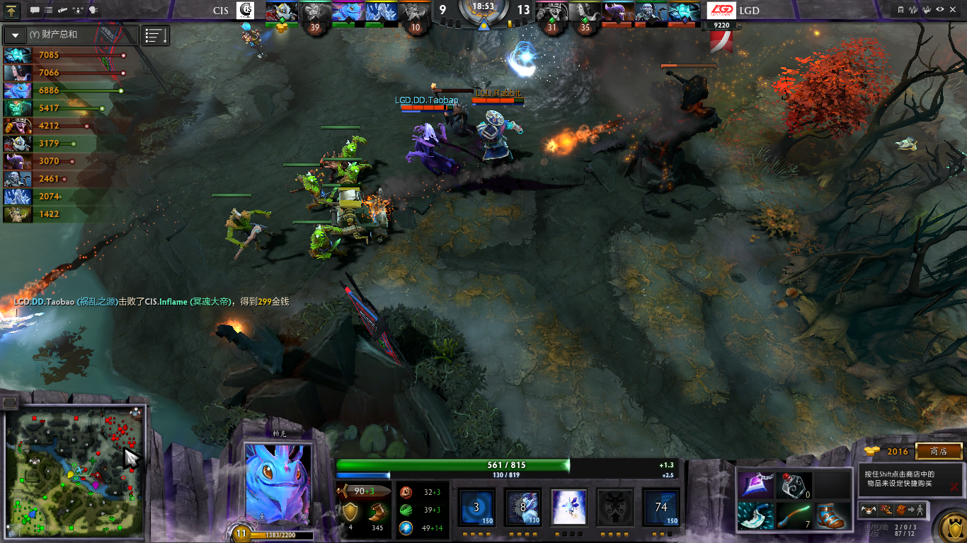 2分30秒,冰魂吃到隐身绕后杀掉LGD信使,发了一波工资。