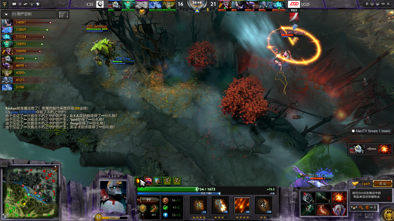 34分40秒发条出色的发挥抢到肉山盾。但是队友状态不佳随后被LGD一番追杀,始终人少打人多,连中塔也丢掉。