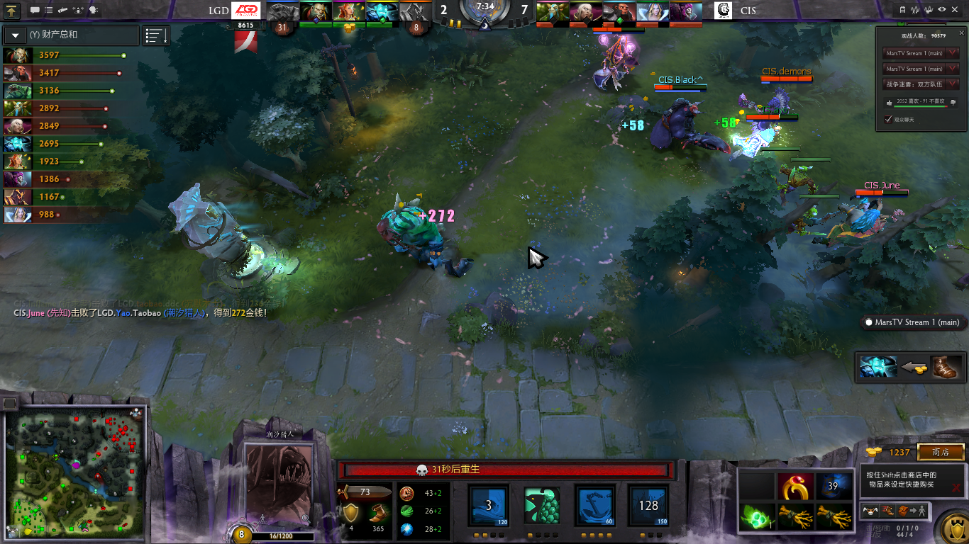 15分钟,凭借着斧王的出色发挥,CIS连续破塔,拔掉LGD的6座外塔。此时小B神的数据达到7/0/9。