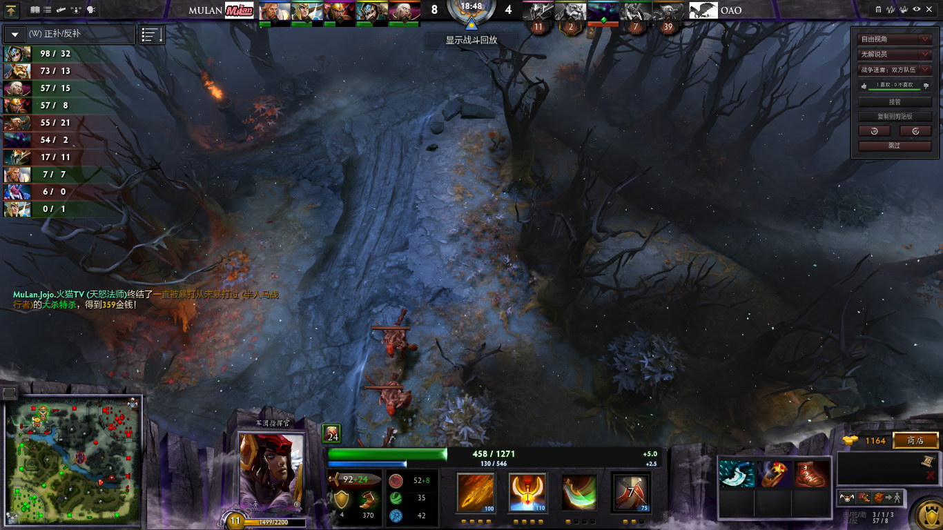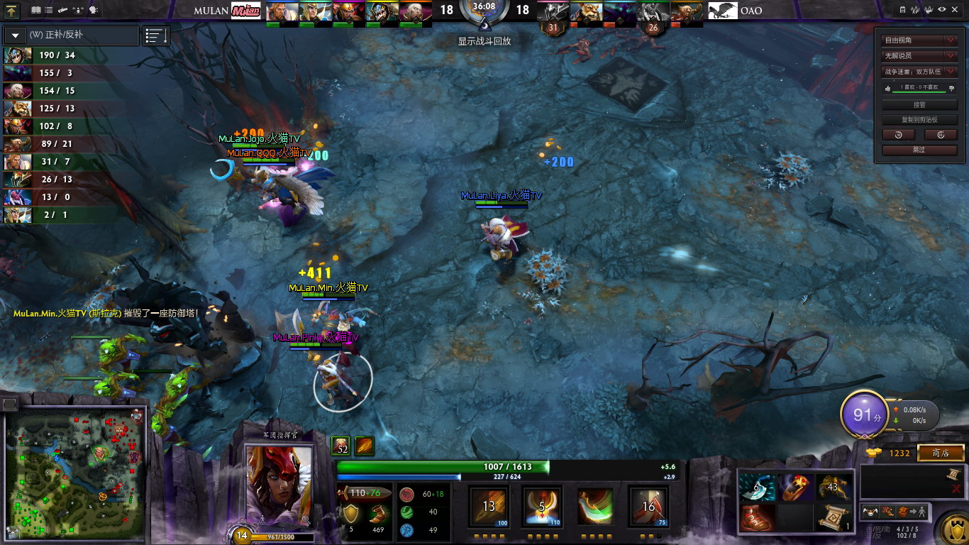 随着人马更新跳刀,Mulan的英雄连续被击杀。但是军团指挥官做出跳刀后,也是直接击杀了酒仙。双方的节奏比较缓慢,3号位成为了双方的节奏点。18分许,双方终于爆发团战,OaO阵亡4人,Mulan向胜利迈进。