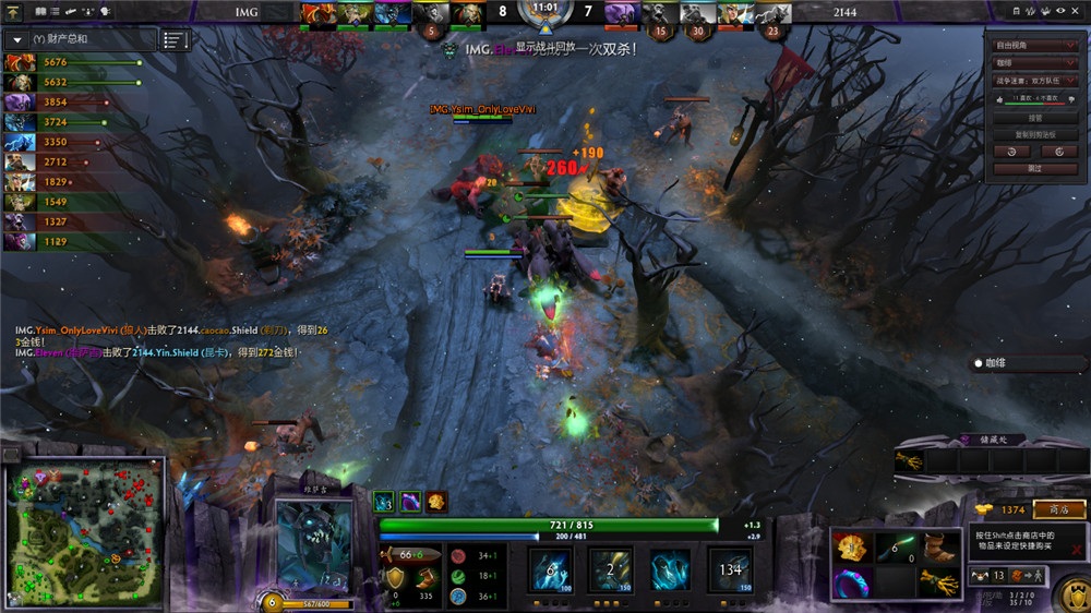 开局,双方直接开始刚三。死灵飞龙强势的刚三能力,是IMG主动刚三的资本。2分20秒,2144大意走位不慎,巫医被一轮暴打交出一血。