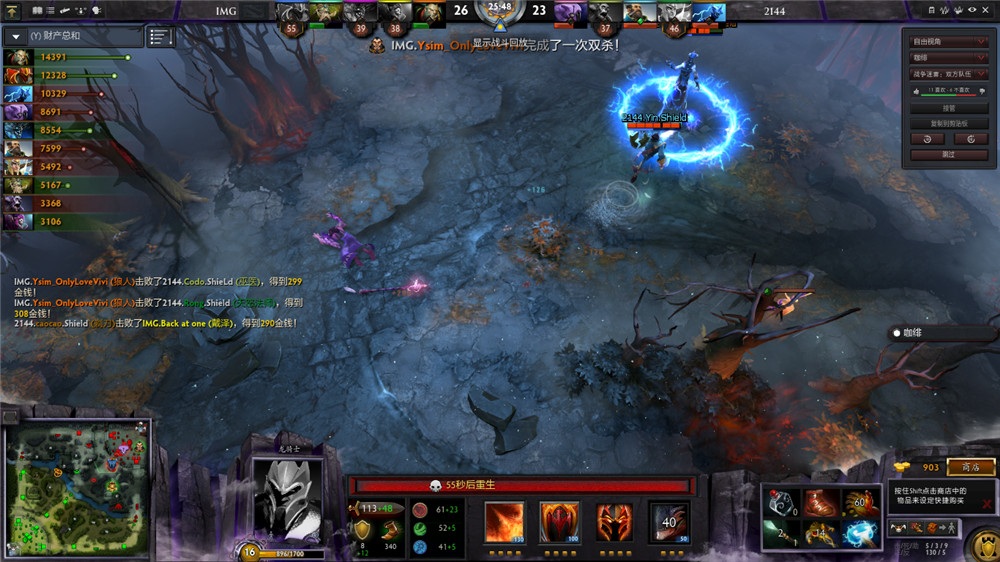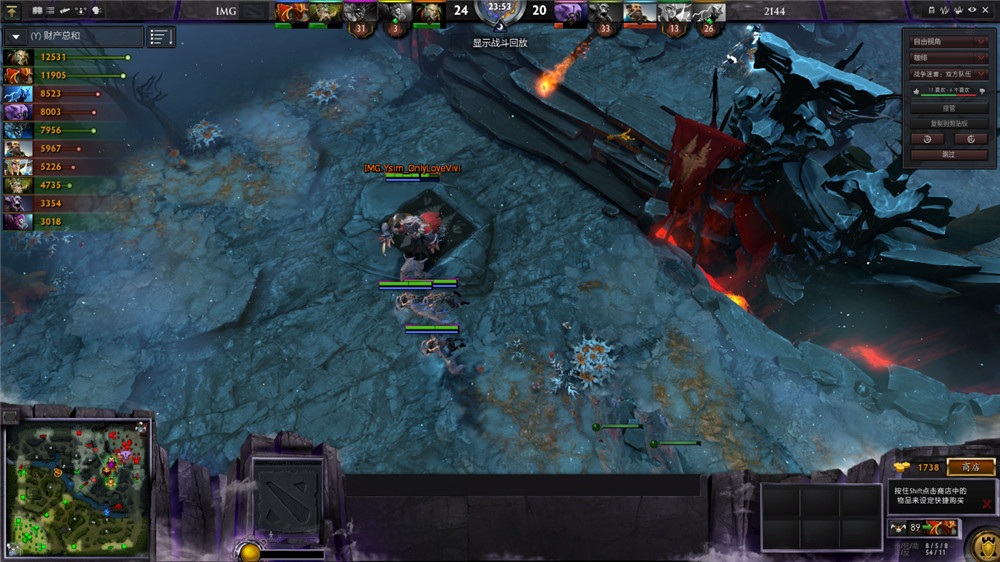 25分半,虚空假面先手,虽然暗影牧师给上薄葬,但是死灵飞龙和龙骑士先后倒下,船长一刀收下双杀。而狼人则是借助跳刀,直接切入后排,杀死两名酱油后扬长而去。但是,随着2144战队的装备更新,IMG方则是龙骑士的BKB时间越来越短,正面战局首次让2144取得上风。在中路一次团战2144方打出1换3后,IMG局面已然不利。连续几次团战,虚空假面先手龙骑士,在龙骑士被集火秒杀后,IMG局面近乎于崩盘。几次小的遭遇,更是让IMG时刻处于人员不齐的状况。