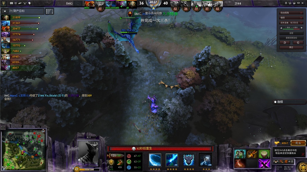 船长过于自信给了2144致命一击:跳入人群砍一刀,却被留下击杀,不能买活!IMG不再等待选择ALL IN!龙骑士在身上存款达到6000时,卖掉了隐刀,选择圣剑!是的,圣剑强拆!后面的故事已经很简单。闪耀着光辉的圣剑,让IMG打出了成吨输出,没有了船长的2144,被不管不顾强拆的龙骑士一路A爆。GG。