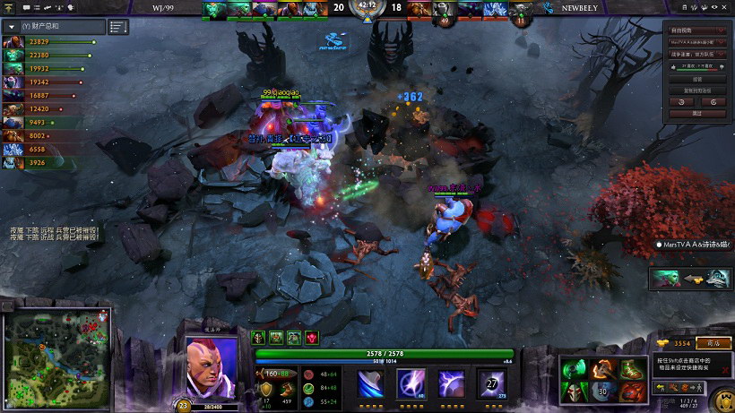 WJ99的阵容优势,在接下来展露无遗。3控阵容,让NB青训队的英雄只要出现走位失误,就是血案。NB青训队被迫换路,幽鬼到上路补发育,人马打野。直到13分钟,NB青训队才在幽鬼开大的情况下,强行带走了双头龙,比分此时3比1.14分许,双方在中路爆发第一波团战,刚刚拿到跳刀的人马先手击杀了死亡先知,双头龙也被带走,而人马自己则是被冥魂大帝击杀。16分许,敌法师被先手击杀,稍后,圣堂刺客勉强拿下肉山。局势被NB青训队稍稍打回。19分,控到隐身符的冥魂大帝先手圣堂刺客,最终双方打成2换2加盾,WJ99稍赚。