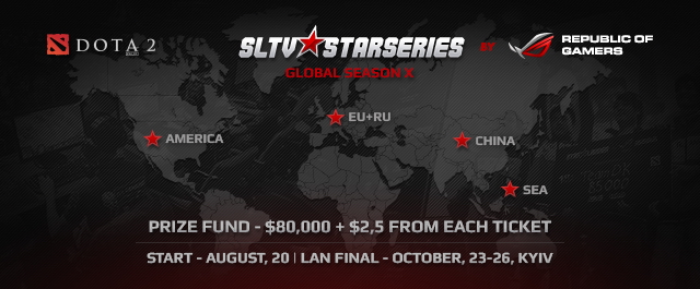 由俄罗斯SLTV主办的新赛季SL10本周正式打响,本次比赛分线上和线下两个阶段,共有8支队伍参加基辅10月的线下总决赛,队伍分别来自欧洲区,中国区,美洲区和新增的东南亚区。8支队伍最终会师总决赛,欧洲4支队伍,中国2支队伍,美洲区和东南亚区分别1支队伍,共8支。