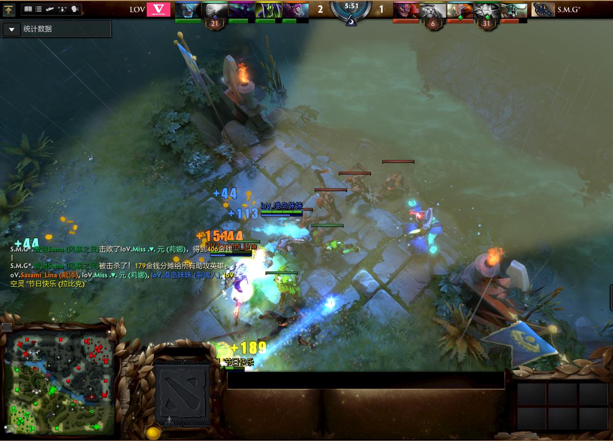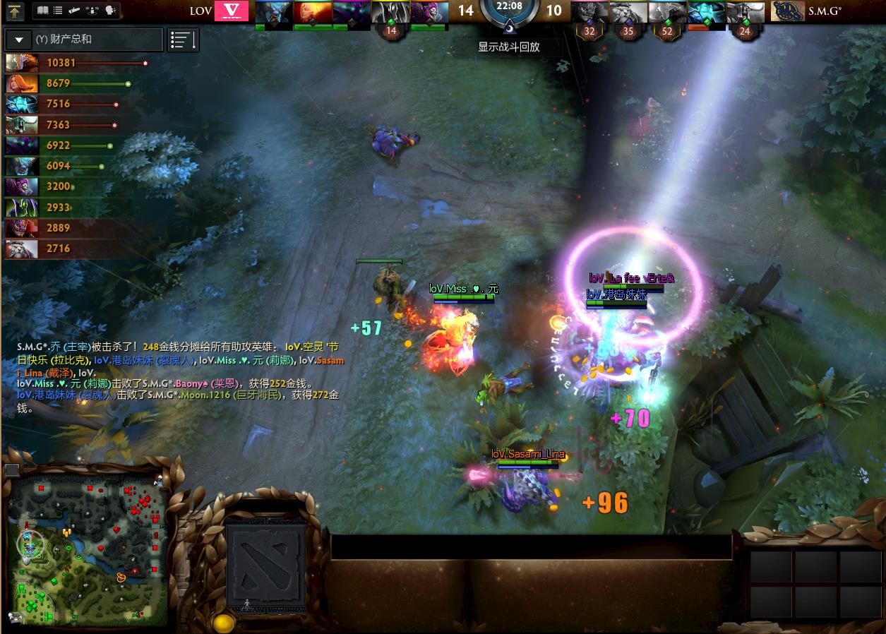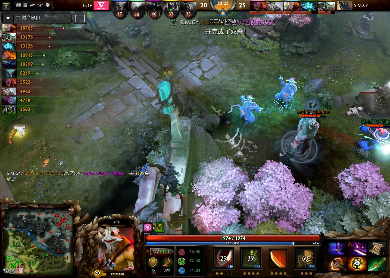 LoV在河道击杀了风暴之灵,然而血精石点数极高的风暴之灵秒活,直接在中路开团。LoV面对SMG的瞬间输出毫无办法,尸王收下三杀。