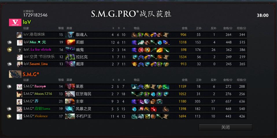 36分钟,LoV主动求战,但是试图秒杀风暴之灵失败。复活的主宰疯狂输出,LoV阵亡3人。无法买活的LoV看着SMG直接推掉遗迹,只能无奈收获一场失利。