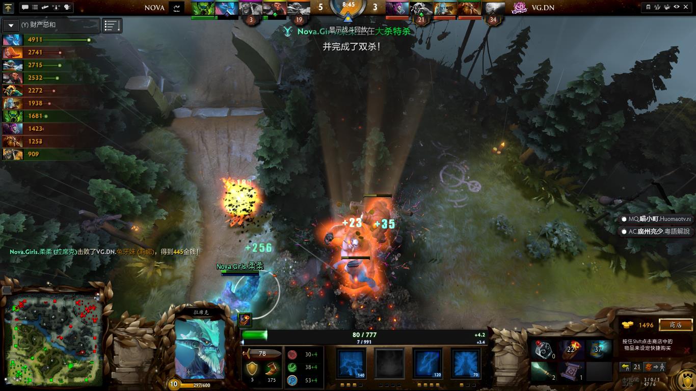 19分钟,Nova上高。拉席克一马当先顶在前面,吸收伤害也极限输出,达成超神之后被终结。VGDN倒下4人,下路被破。22分钟,Nova推上上路高地,哈斯卡和莉娜被杀。