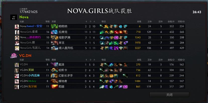 25分钟,Nova击杀肉山,拉席克带盾。随着哈斯卡被先手击杀,VGDN被破三路,无奈打出GG。