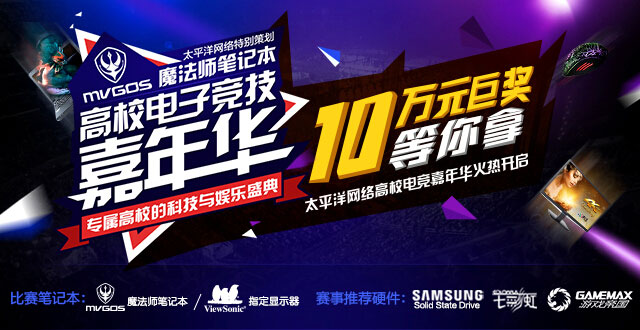 9月1日,伴随着开学季钟声响起的同时,由国内领先的游戏垂直网站太平洋游戏网、国内知名IT门户太平洋电脑网领衔主办,魔法师笔记本冠名、三星固态硬盘、七彩虹、GAMEMAX、优派等知名硬件厂商倾情加盟的高校电竞嘉年华也在全国各地近百所高校中正式拉开序幕。在本次嘉年华活动玩家不仅可享受顶级电子竞技带来娱乐和荣耀,更能与前沿科技产品来一次亲密接触。