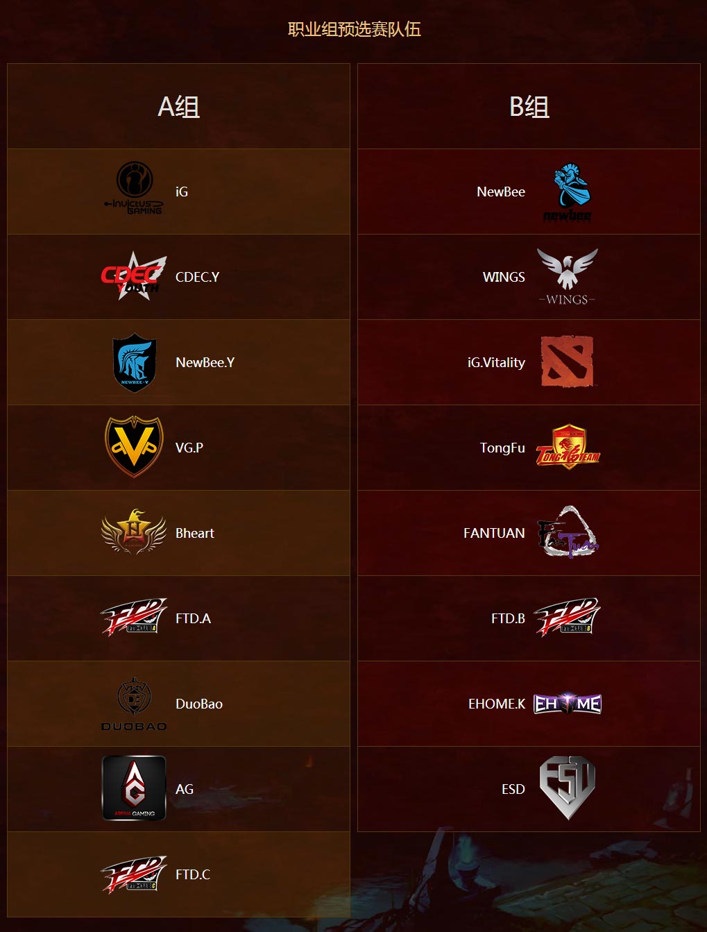 直接邀请主赛事战队:CDEC、EHOME、LGD和VG。