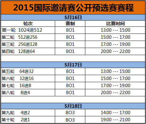国际邀请赛公开预选赛赛程