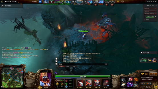 在DOTA2观战系统中内置有导播、选手、解说等不同视角,高自由度让你更全面的了解战局。