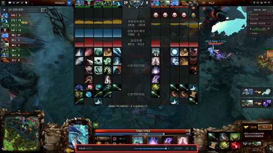 在观战系统中,你可以很方便的查看团队经验值差、团队经济差、详细个人数据等,比赛形势一目了然。