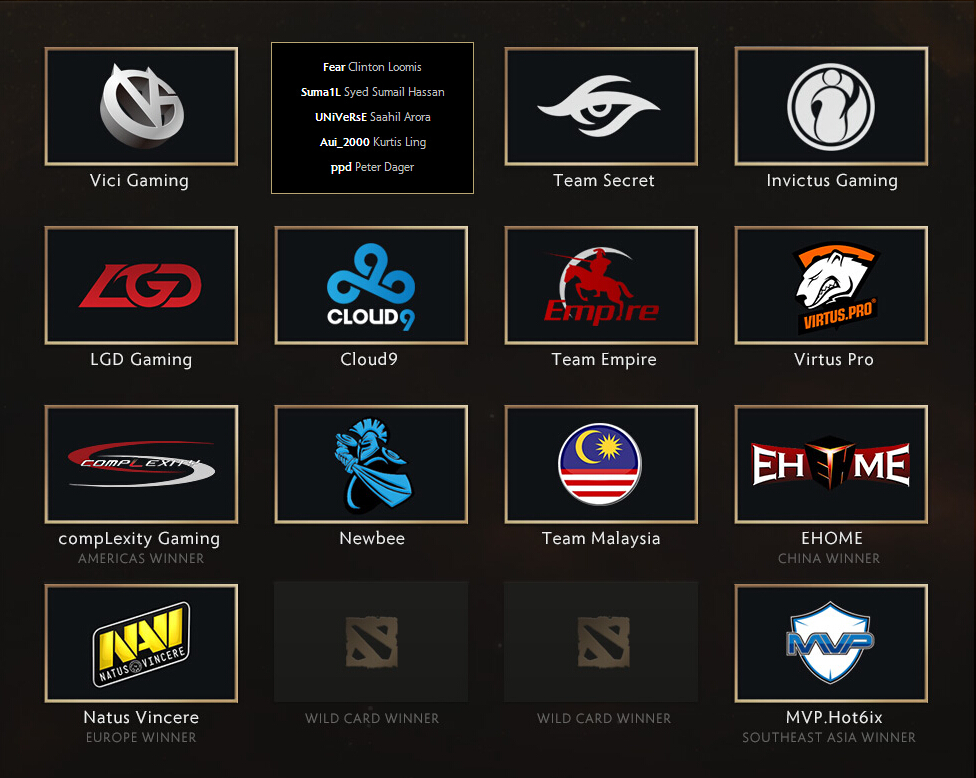 直接受邀战队:VG、IG、LGD、Newbee、EG、Secret、C9、Empire、VP、MY