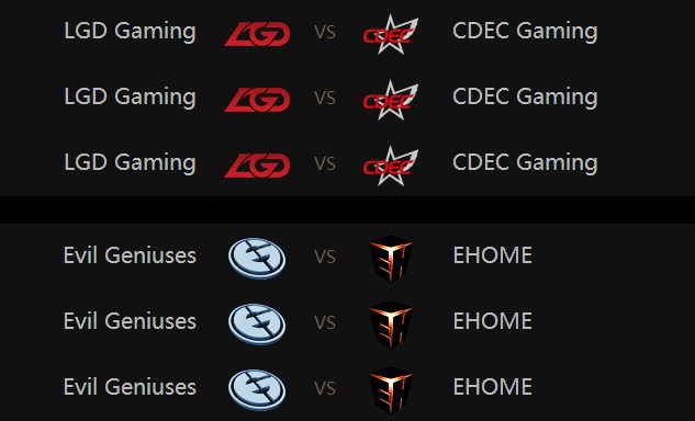 【胜者组:LGD对阵CDEC;EG对阵Ehome】