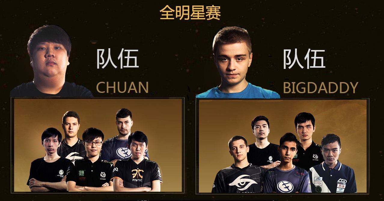 2015国际邀请赛全明星赛名单:ChuaN和Bigdaddy分别任教练,ChuaN神队伍有Mushi、Puppey、Fear、Ferrari430、Hao。Bigdaddy队伍有SumaiL、iceiceice、BurNIng、xiao8、Arteezy。全明星比赛将在8月7日压轴上演,切勿错过他们精彩的表演。