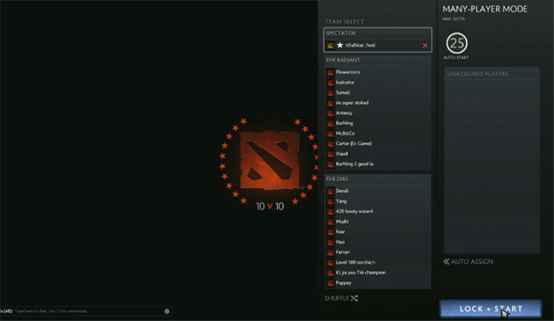 10 VS 10的DOTA载入 右侧MANY-PLAYER MODO醒目
