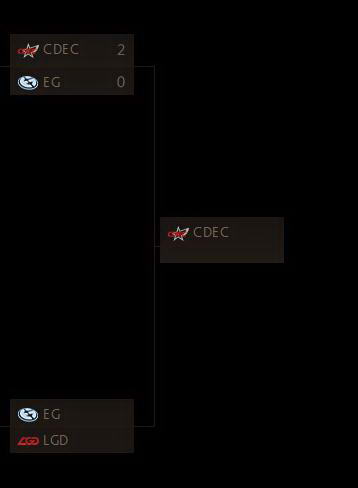 CDEC这支新人战队,今天继续给了我们惊喜。仍然是比赛前不被看好,但是今天的他们,战胜了又一支超级强队。首战,他们局面并不占优,EG老道的经验和发挥确立了前期优势。但是CDEC坚持他们的团战风格,用一次次团战,逐步打回劣势。随着巨牙海民神级发挥,连续分割战场和救人,EG被强悍的CDEC用团战击溃,CDEC艰难翻盘。第二局,则是CDEC的碾压,上一局似乎让EG失去了锐气,CDEC在对线优势后,连续两波团战直接让EG打出GG。随着他们拿到了胜者组冠军,他们已经创造了历史,接下来,我们期待他们成就无上荣耀!