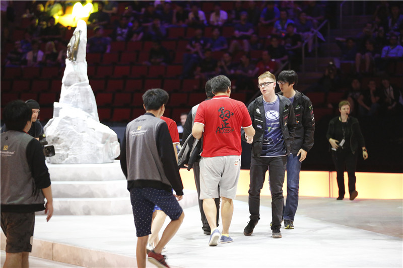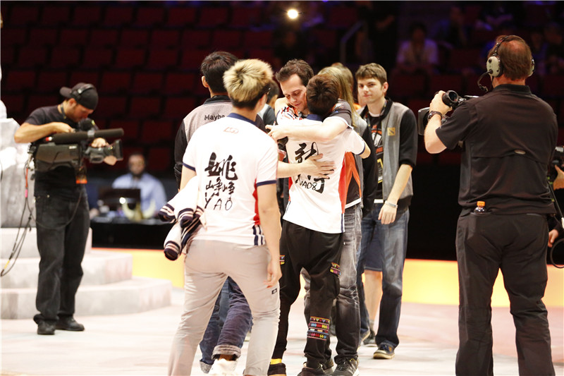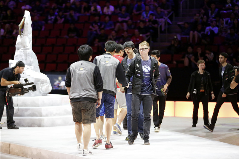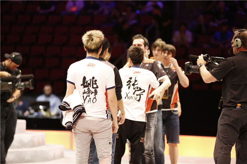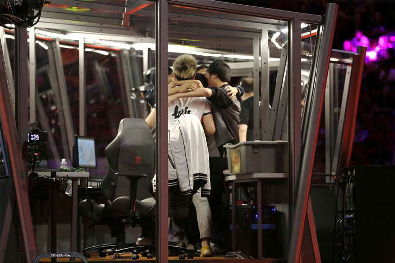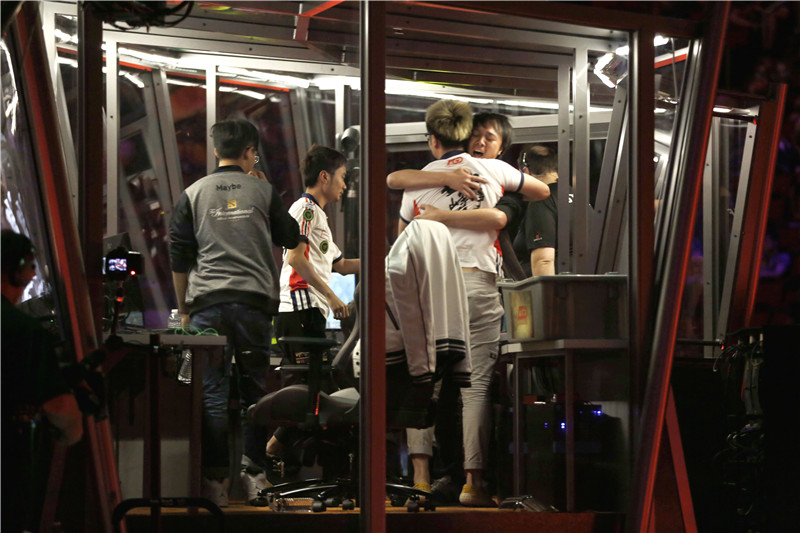 图3:LGD对战VP赛后两队选手拥抱