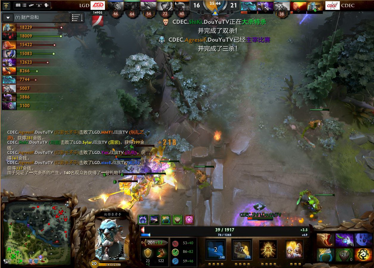 下一轮。对手是渊源极深的老大哥LGD战队。风格都是团战,LGD明显经验丰富。大家都觉得,LGD会毫无悬念赢得比赛。但是大家都错了。CDEC的团战让LGD绝望,细致的走位和对阵C9如出一辙,一波团战持续三波的引诱让LGD失去了全部主动权。年轻的CDEC击败了老大哥LGD,再进一步!2比0。