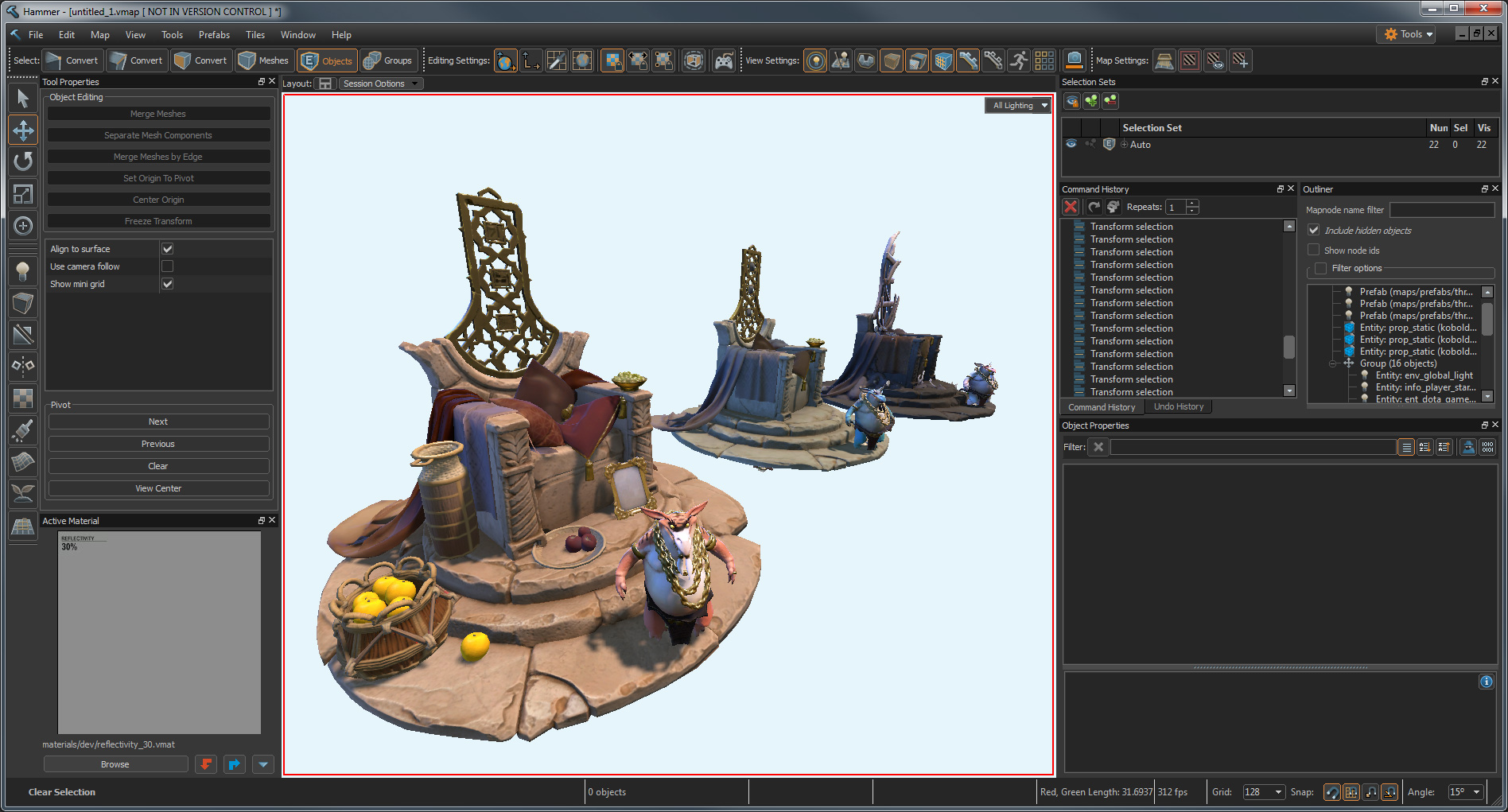 使用铁锤的‘瓷砖’系统来快速在您的地图中进行布局,然后用它强大的3D建模工具来完善您的创作。内嵌的资源浏览器允许您浏览模型,粒子,以及材质,并能便捷地将它们拖拽到关卡编辑器里。使用3D视图中不同的灯光选项来查看你的作品在游戏中最终运行时的样子。